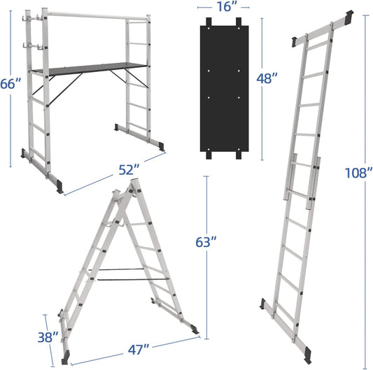 Aluminum Scaffold, 3 IN 1 Multipurpose Scaffolding Platform 330 Lbs Duty Rate